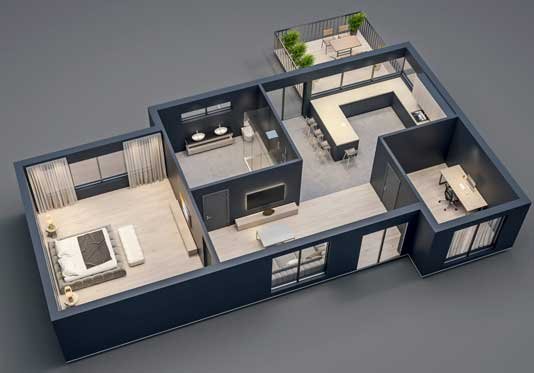 Contemporary 3BHK Flat Design with Black and White Accents Living Room