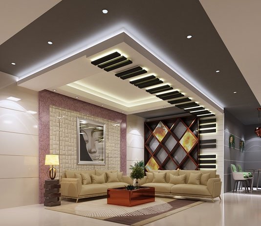 Contemporary 3BHK Flat Design with Black and White Accents Living Room