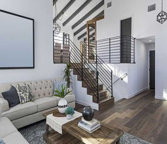 Contemporary 3BHK Flat Design with Black and White Accents Living Room