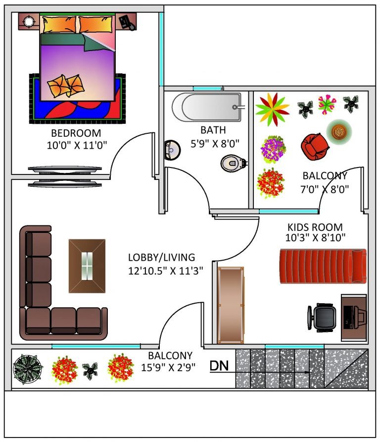 Contemporary 3BHK Flat Design with Black and White Accents Living Room