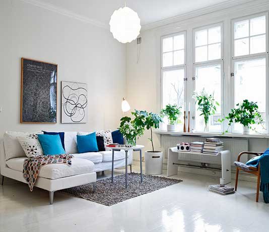 Contemporary 3BHK Flat Design with Black and White Accents Living Room