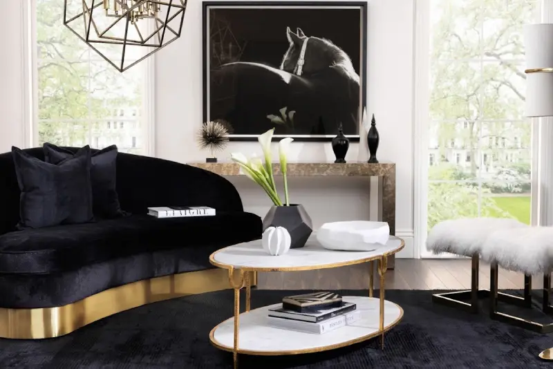 Contemporary 3BHK Flat Design with Black and White Accents Living Room