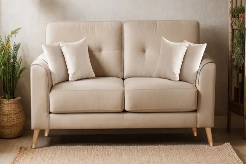 Beige Sofa with Wooden Furniture