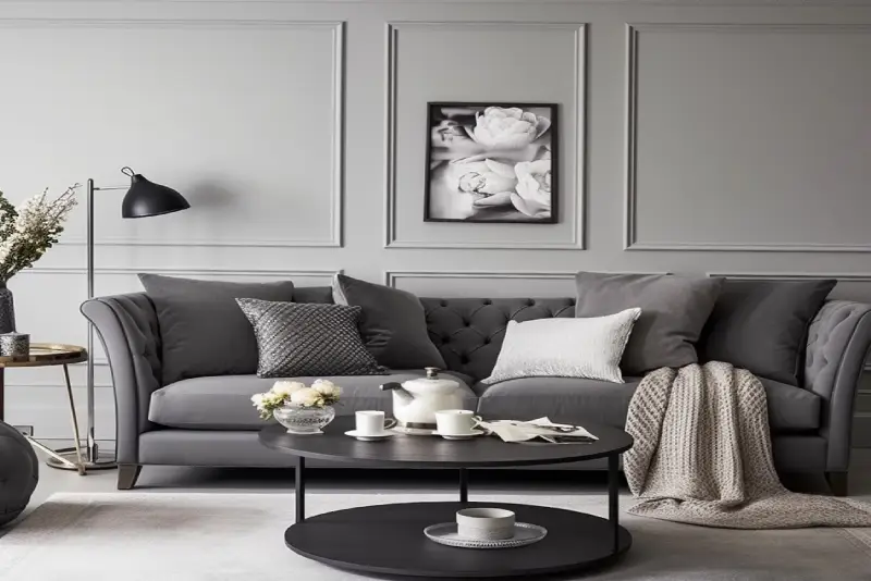 Contemporary 3BHK Flat Design with Black and White Accents Living Room