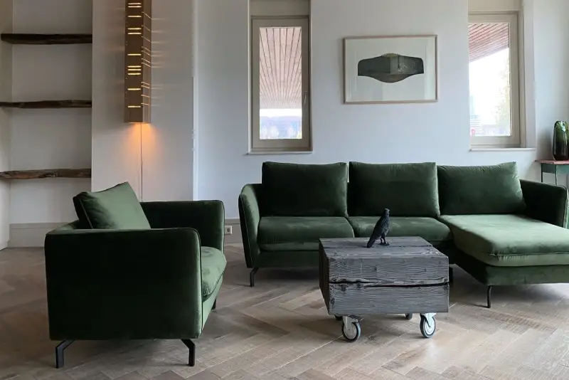 Contemporary 3BHK Flat Design with Black and White Accents Living Room