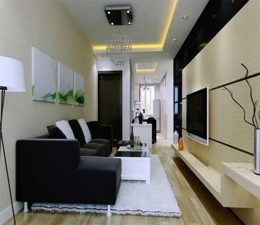 Contemporary 3BHK Flat Design with Black and White Accents Living Room