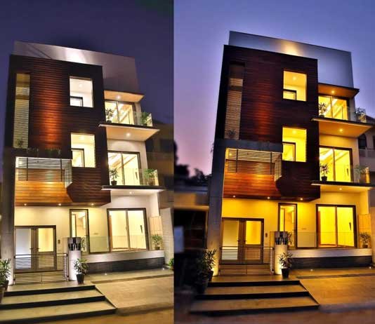 Contemporary 3BHK Flat Design with Black and White Accents Living Room